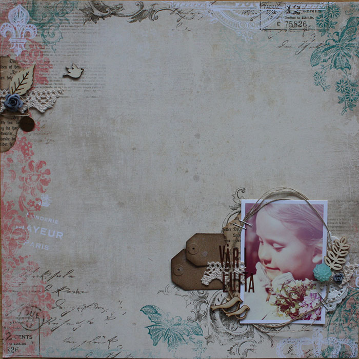Da jeg hadde plukket ut bilder og lurte på hvordan jeg skulle pynte den så fant jeg jammen meg et eiffeltårn i boksen med alt det rare på scrapperommet. Kunne ikke passet bedre!